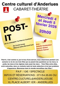 Infos/Réservations : centre.culturel@anderlues.be – 071/54.35.65