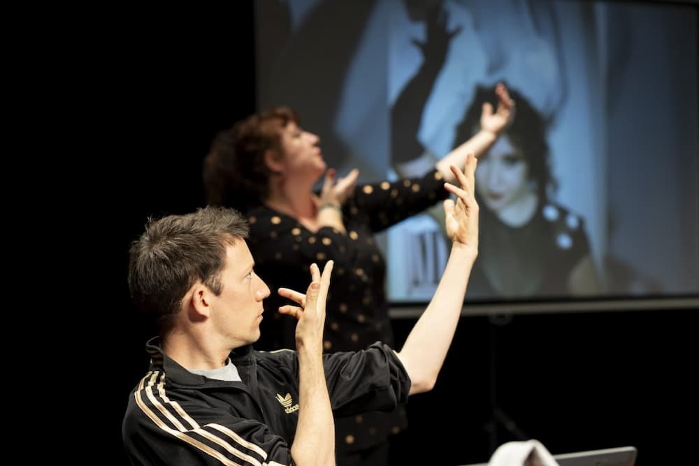 Nous avons découvert ce premier spectacle de Pierrick De Luca – en tant qu’auteur et metteur en scène – lors du festival Factory, à Liège. Porteur du projet, il a très vite été rejoint par Zoé Kovacs, complice et co-créatrice. Avec presque rien (une table, un ordinateur, un vidéoprojecteur et des enceintes), le duo convoque un village et ses habitant·es, dans une théâtralité joyeuse et inventive. Sous couvert d’enquête, il nous met face à la violence, subie et/ou commise. Nous sommes invité·es à passer de l’autre côté du regard normatif, avec – pour horizon – l’espoir d’un nouveau paradigme.