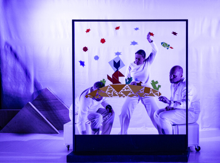 Le tangram est un puzzle d’origine chinoise. C’est un carré divisé en sept formes géométriques simples. Avec un tangram, on peut raconter toutes les histoires du monde. Sur scène, plusieurs tangrams composent l’ensemble des décors et des personnages de l’histoire, celle de Piou-Piou, un oiseau qui ne savait pas voler. Il est le héros de cette petite fable épique, inspirée par celle d’Esope, qui fait l’éloge de la curiosité et de l’ouverture au monde… PAN !…